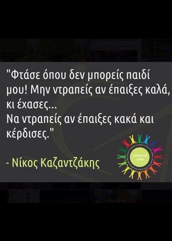 Φτάσε όπου δεν μπορείς παιδί μου! Μην ντραπείς αν έπαιξες καλά, κι έχασες... Να ντραπείς αν έπαιξες κακά και κέρδισες.