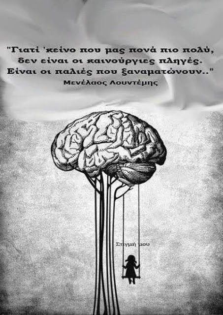 Γιατί 'κείνο που μας πονά πιο πολύ, δεν είναι οι καινούριες πληγές. Είναι οι παλιές που ξαναματώνουν..