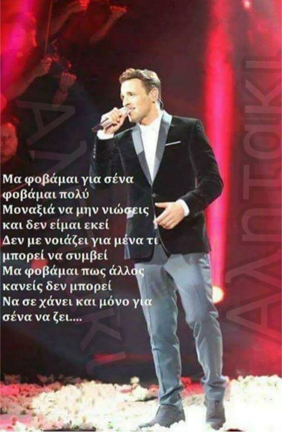 Μα φοβάμαι για σένα φοβάμαι πολύ.. Μοναξιά να μην νιώσεις και δεν είμαι εκεί. Δεν με νοιάζει για μένα τι μπορεί να συμβεί.. Μα φοβάμαι πως άλλος κανείς δεν μπορεί να σε χάνει και μόνο για σένα να ζει.....
