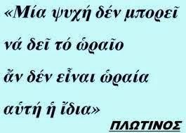 «Ποτέ το μάτι δεν θα μπορούσε να δει τον ήλιο αν δεν ήταν ηλιοειδές [=αν δεν διέθετε ηλιακή μορφή ή φύση], ούτε η ψυχή θα μπορέσει να αντικρίσει το ωραίο, αν δεν έχει γίνει πρώτα ωραία η ίδια».