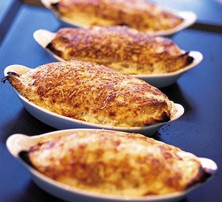 Κρατείστε λίγο μπέϊκον ψιλοκόψτε το και πασπαλίστε το φαγητό πριν το ψήσετε ή Μπορείτε να σερβίρετε και σε ατομικά φορμάκια ατομικές μερίδες.